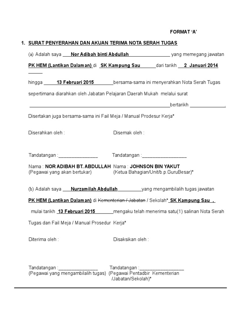 Surat Serahan Tugas - Penyerahan Tugas Pdf / 08.06.2021 · 3.0 punca kuasa penyediaan nota serah tugas.